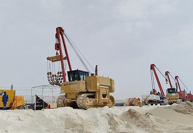 阿聯(lián)酋地區(qū)氣候炎熱,夏季氣溫常高達(dá)50攝氏度以上,加之沙塵環(huán)境復(fù)雜,對工程設(shè)備的性能提出了高要求。中蘇海工履帶吊管機以其強大的動力系統(tǒng)、高效的散熱設(shè)計以及堅固的結(jié)構(gòu),完美適應(yīng)了這些挑戰(zhàn),確保了施工的高效性和連續(xù)性。設(shè)備在高溫環(huán)境下運行穩(wěn)定,操作靈活,極大地提升了施工效率,贏得了現(xiàn)場施工人員的一致好評。